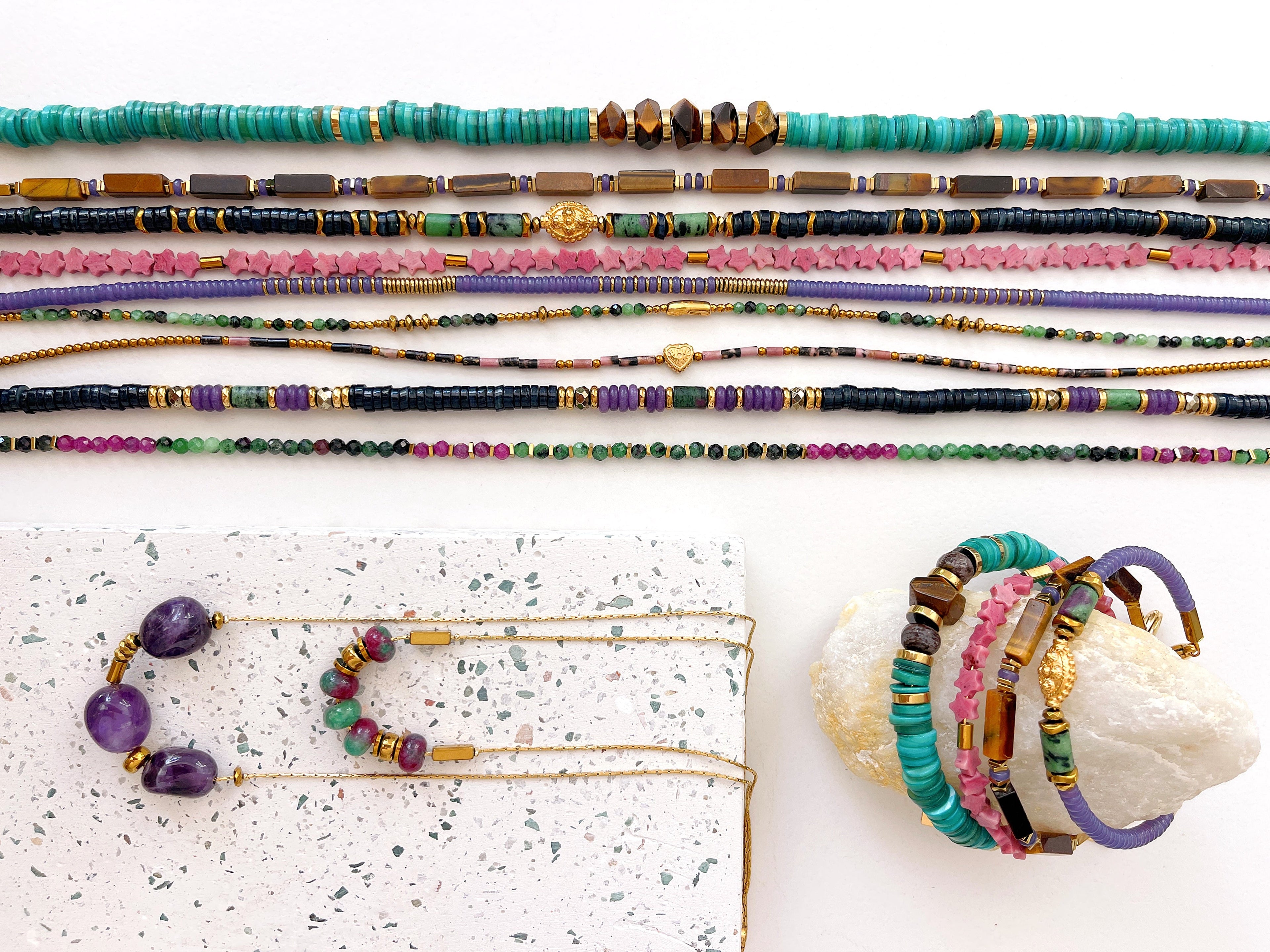 Une palette profonde, arty, féminine, pour celles qui aiment l’inattendu, les contrastes maîtrisés, et les bijoux qui attirent l’œil sans l’imposer.