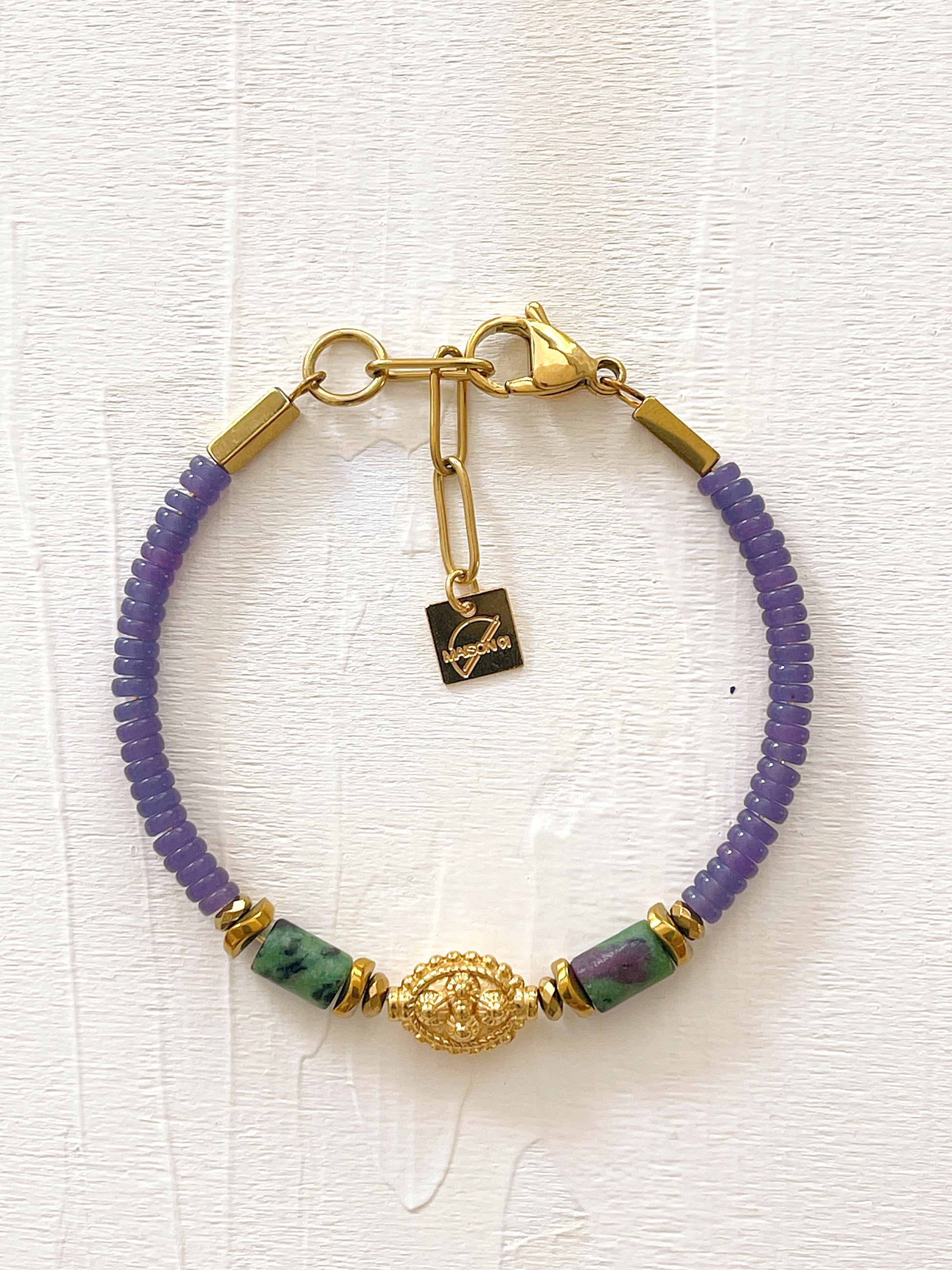 ° Jade mauve, Rubis Zoïsite & Hématite doré