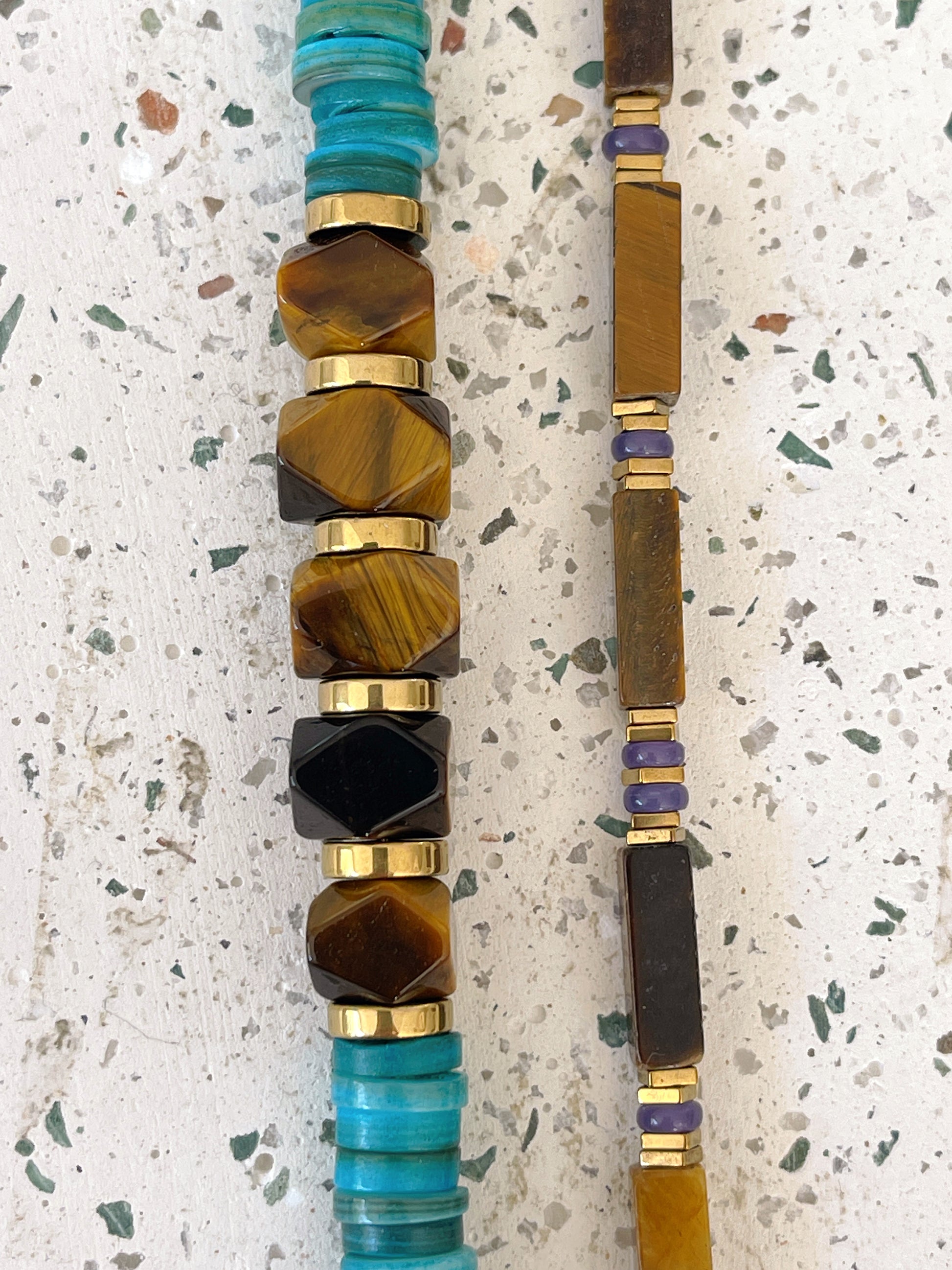 ° Oeil de tigre, Jade mauve et Hématite dorée