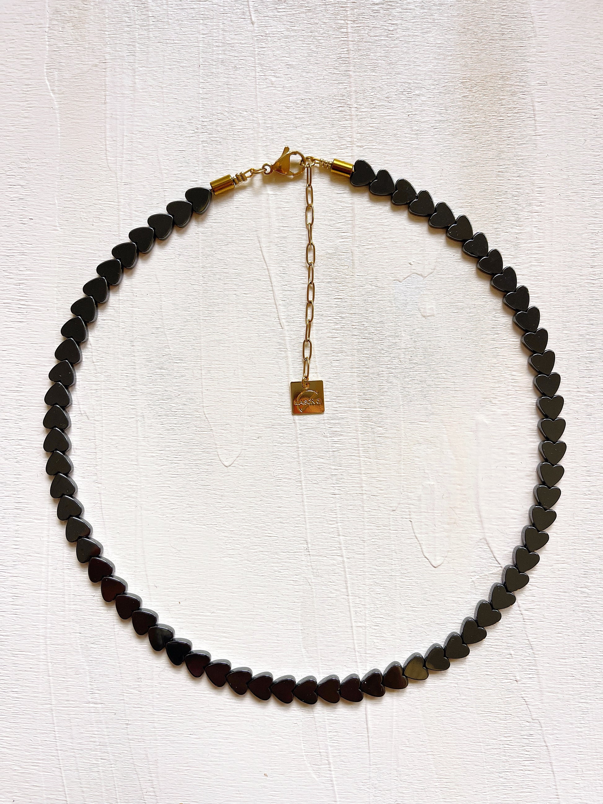 Le Cœur est là, l'attitude aussi. Oubliez la guimauve ! Ce collier prend le symbole classique du cœur et lui injecte une bonne dose de chic graphique. L'Hématite, puissante, apporte un contraste black SO moderne. C'est l'équilibre parfait entre l'émotion et l'audace. Portez-le seul pour un look net ou empilez-le pour un effet "power stacking" sans effort. La pièce que vous nous avez demandée est enfin là.