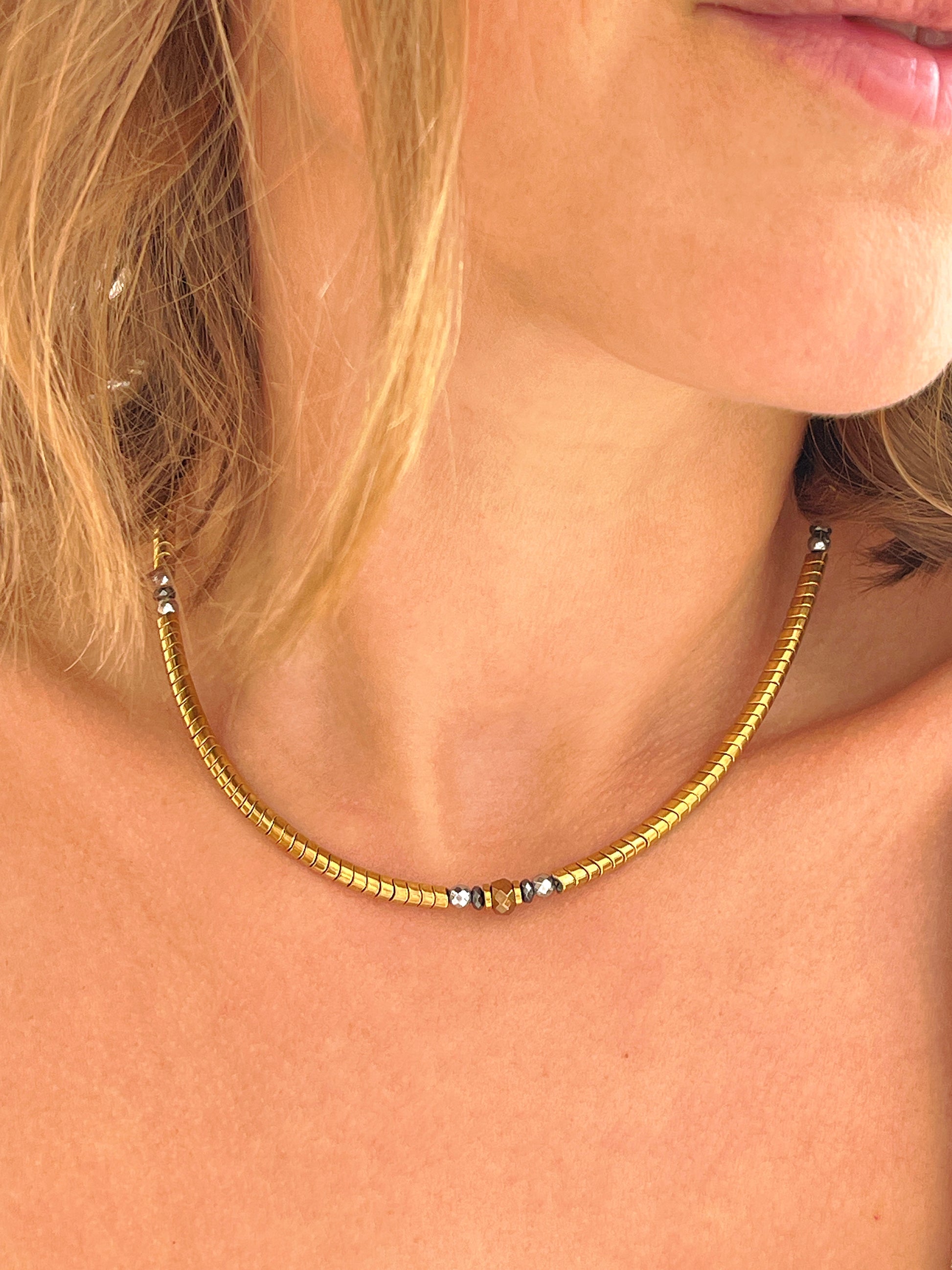 Un bijou, mille looks! Un seul collier, une infinité de possibilités avec notre collier RITA, c'est le collier en Hématite qu'il te faut pour pimper tous tes combos. Minimaliste et chic, il se porte seul ou en accumulation et s’associe avec tout sans jamais se tromper. Un basique incontournable à avoir toujours autour du cou pour ajouter ce petit truc en plus à ton style.