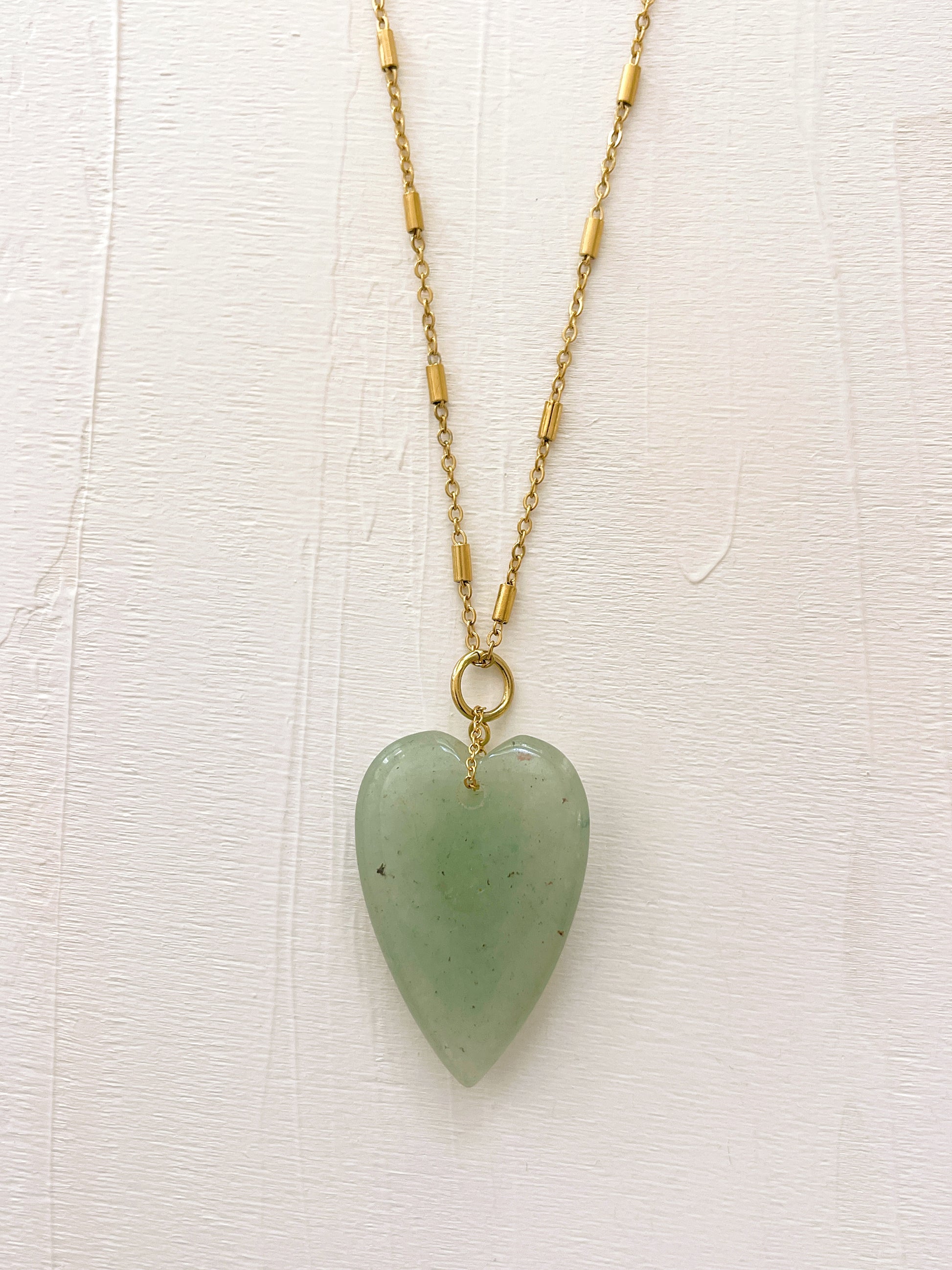 Laissez-vous charmer par SIXTINE, le sautoir qui ne passe pas inaperçu. Son pendentif cœur XXL en Aventurine attire tous les regards et apporte une touche graphique et originale à vos combos de bijoux. Un bijou unique, à la fois élégant et chargé de sens, à porter seul ou en accumulation.