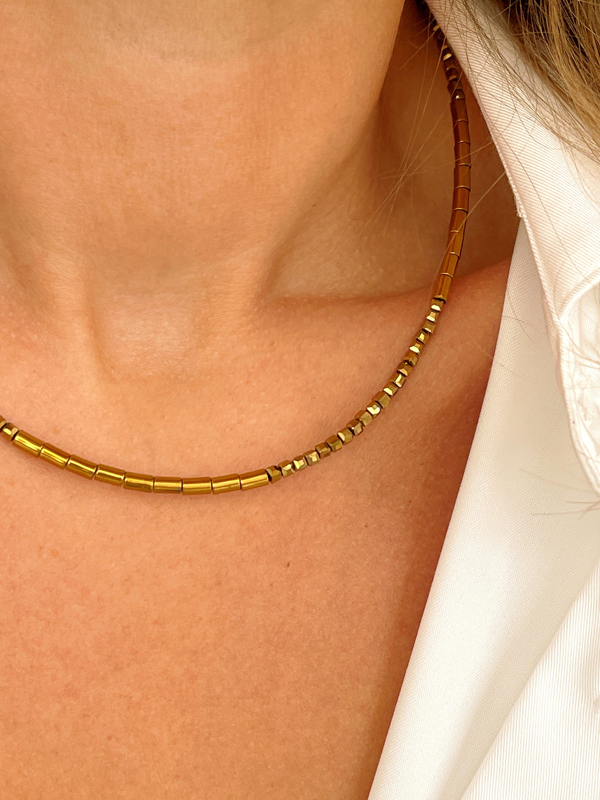 Un bijou, mille looks! Un seul collier, une infinité de possibilités avec notre collier TOBIAS Or, c'est le collier en Hématite qu'il te faut pour pimper tous tes combos. Minimaliste et chic, il se porte seul ou en accumulation et s’associe avec tout sans jamais se tromper. Un basique incontournable à avoir toujours autour du cou pour ajouter ce petit truc en plus à ton style.