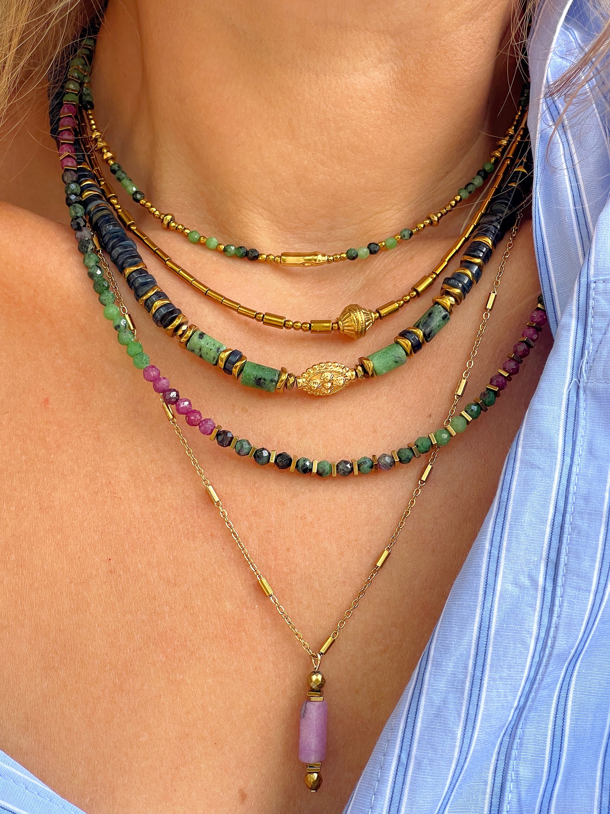 THAIS Rubis zoïsite + TOINETTE + TOSCANE Rubis zoïsite + THELMANE Orchidée + LORETTE Mica